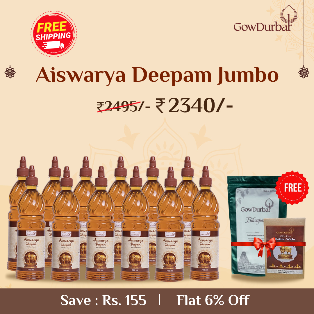 Aiswarya Deepam Oil, known for its purity and spiritual significance, kindles the essence of divinity in your surroundings. Infuse your space with the sacred glow of Aiswarya Deepam Oil and let its radiance illuminate your rituals and moments of worship.