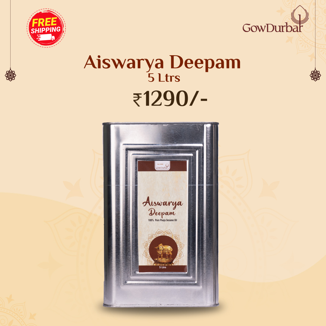 Aiswarya Deepam sacred oil emerged as a one-stop solution based on vedic scriptures. It is cultivated with indigenous cow ghee, 100% natural oils derived from sesame, grain, coconut, and mahua flowers blended with medicinal herbs such as tulsi, cloves, and camphor extracts in proportions prescribed by ancient formulas.