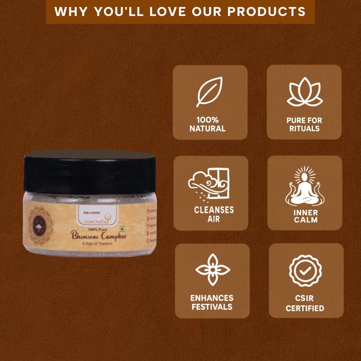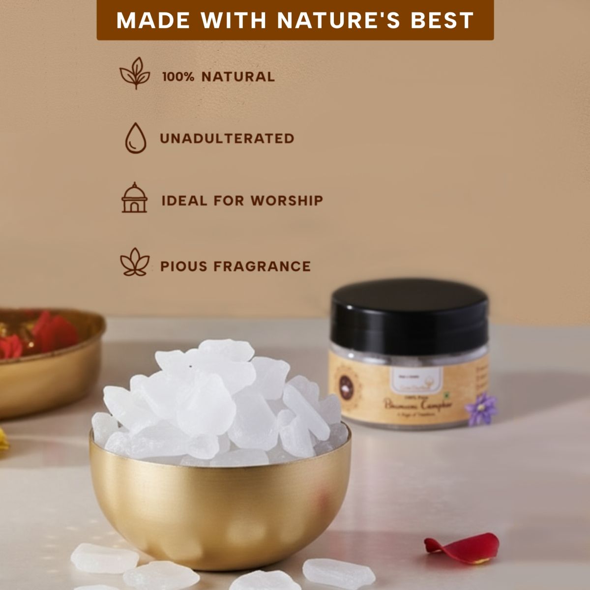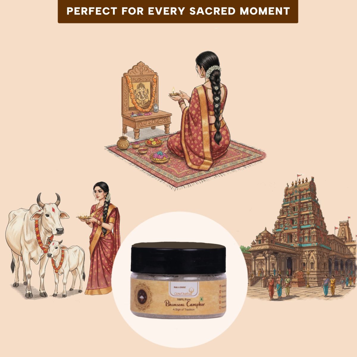 Small-batch curation: ensures tight control over quality, texture, and the unmistakable, temple-inspired character that sets Bhimseni camphor apart.