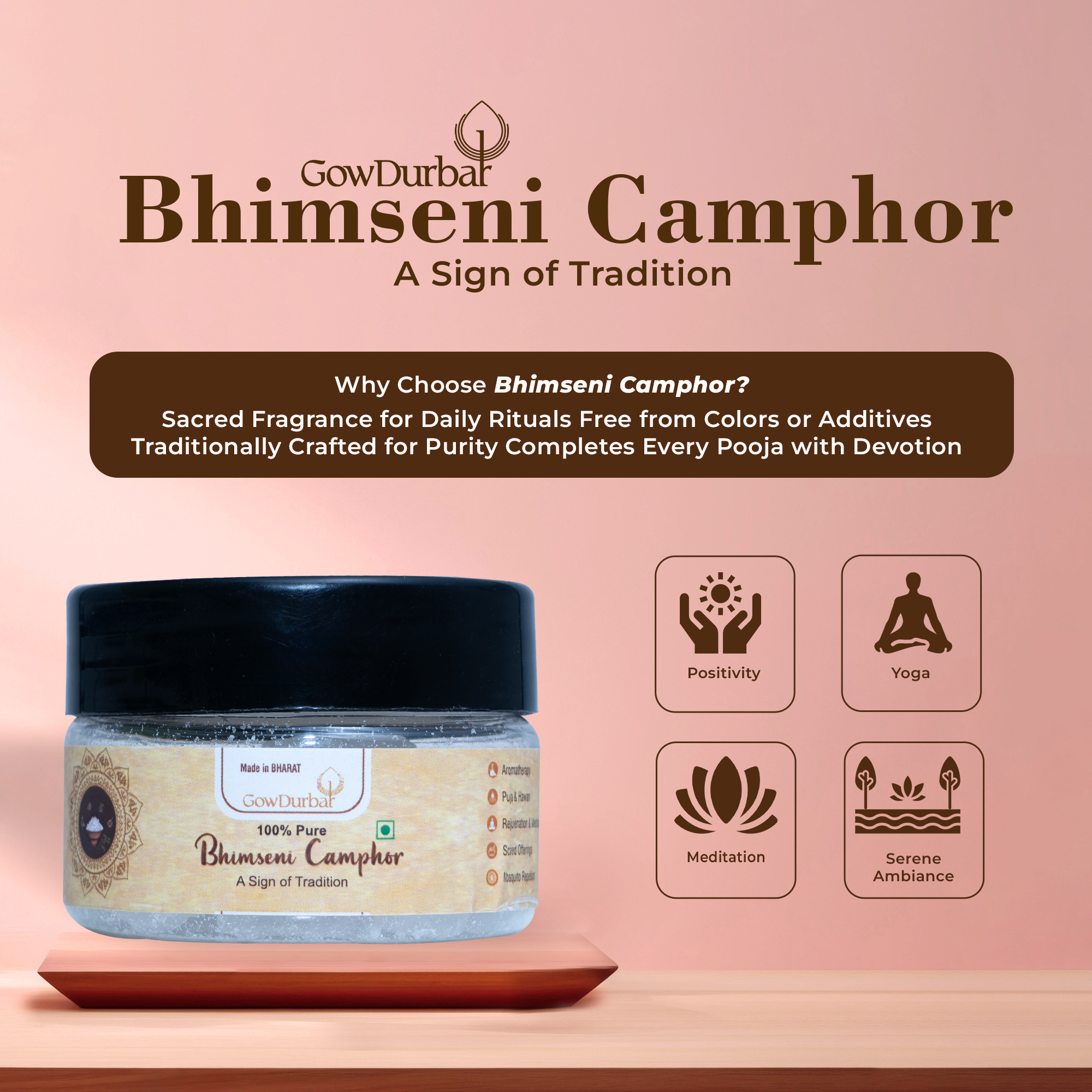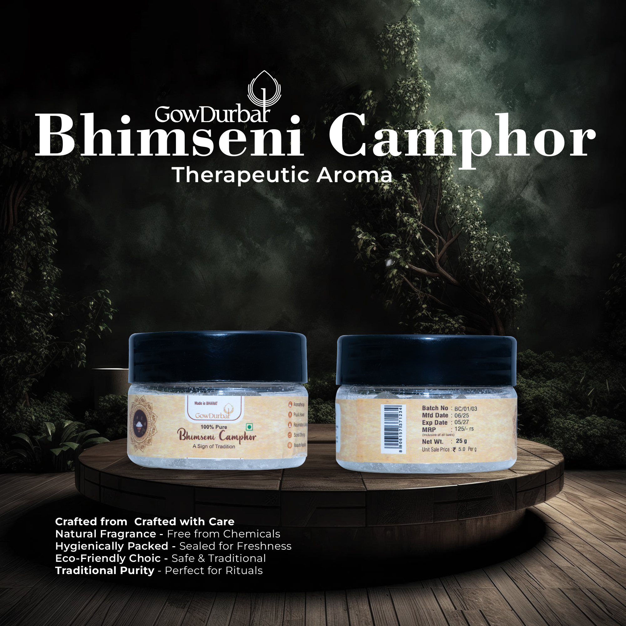 Bhimseni Camphor is a rare, naturally-sourced form of camphor, renowned for its purity, distinctive aroma and wide range of traditional uses. Extracted from the Cinnamomum camphora tree through a meticulous natural process, it is completely free from synthetic additives, making it ideal for both culinary and wellness applications.
