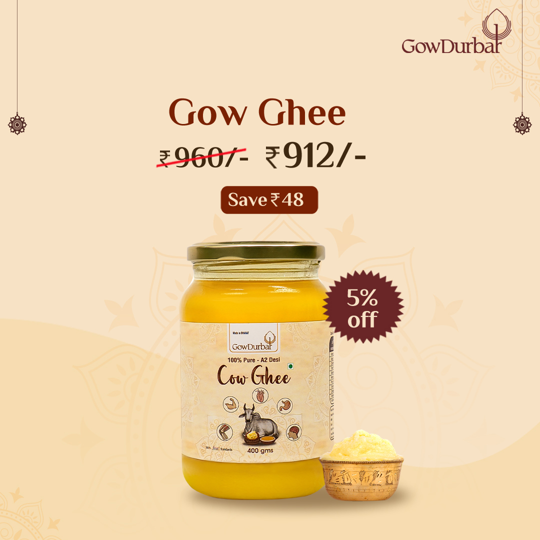 Experience the richness of GowDurbar Cow Ghee, crafted from the milk of healthy Indigenous A2 cows. Pure, delicious, and lab-certified, it provides countless health benefits for a truly nourishing experience.