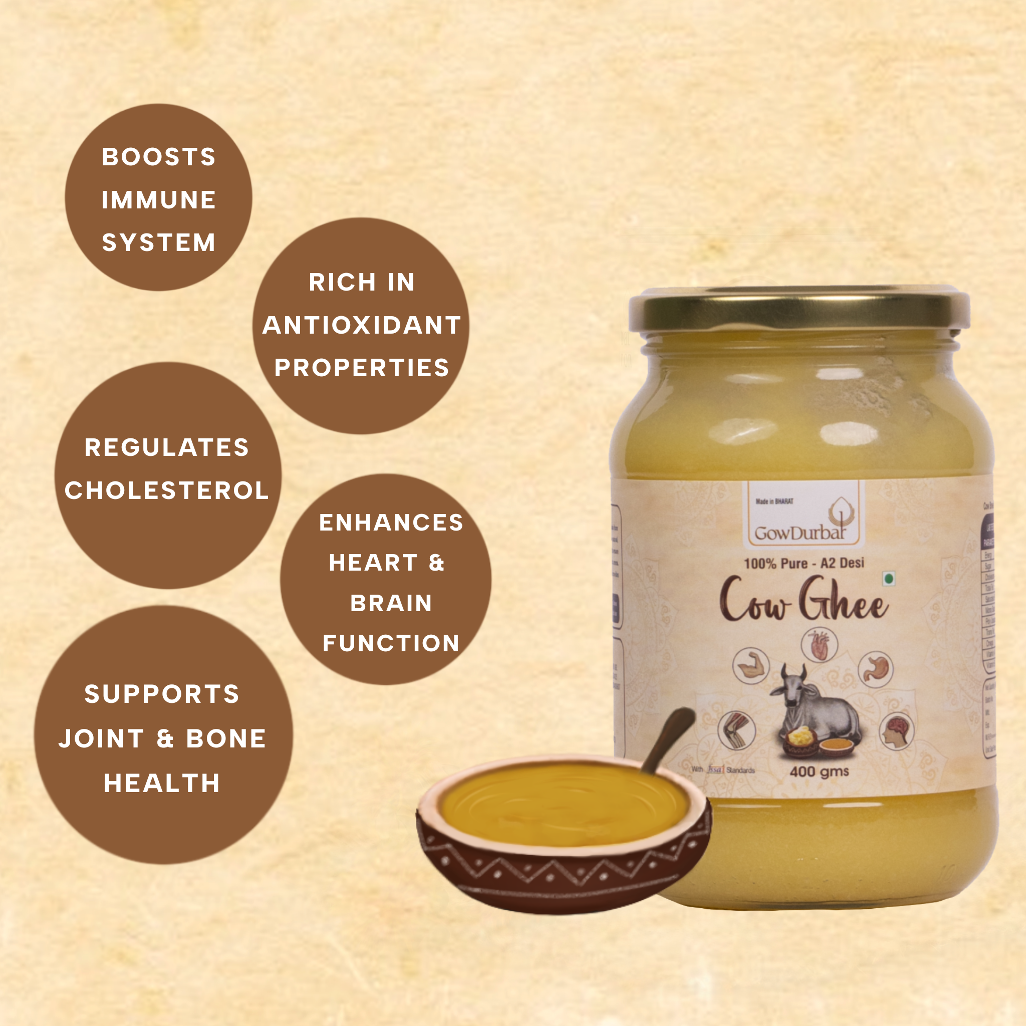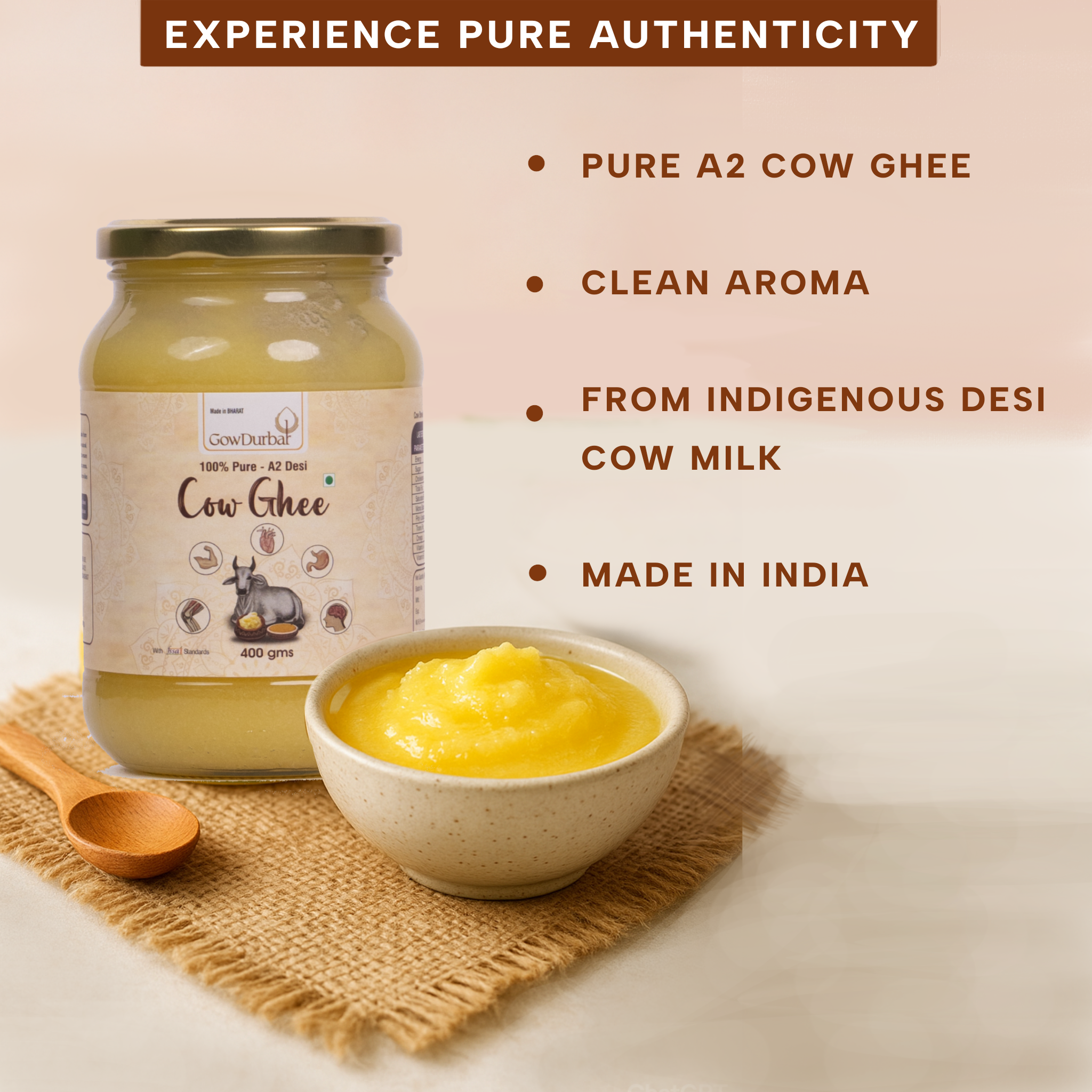 - Sourcing: fresh milk from indigenous desi cows, selected for quality before processing begins.