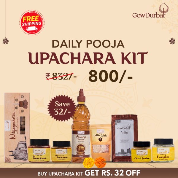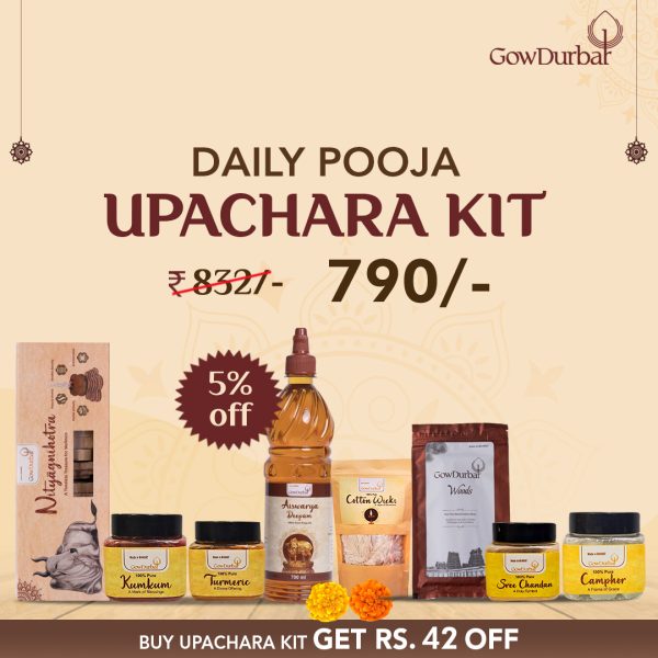 GowDurbar Daily Pooja Upachara Kit is a thoughtfully curated collection of essential items designed to support and enrich your daily worship routine at home, office, or place of business. Bringing together traditional purity and modern convenience, this kit ensures you have everything needed for a complete, serene, and spiritually uplifting pooja experience—beautifully packaged to evoke devotion every day.