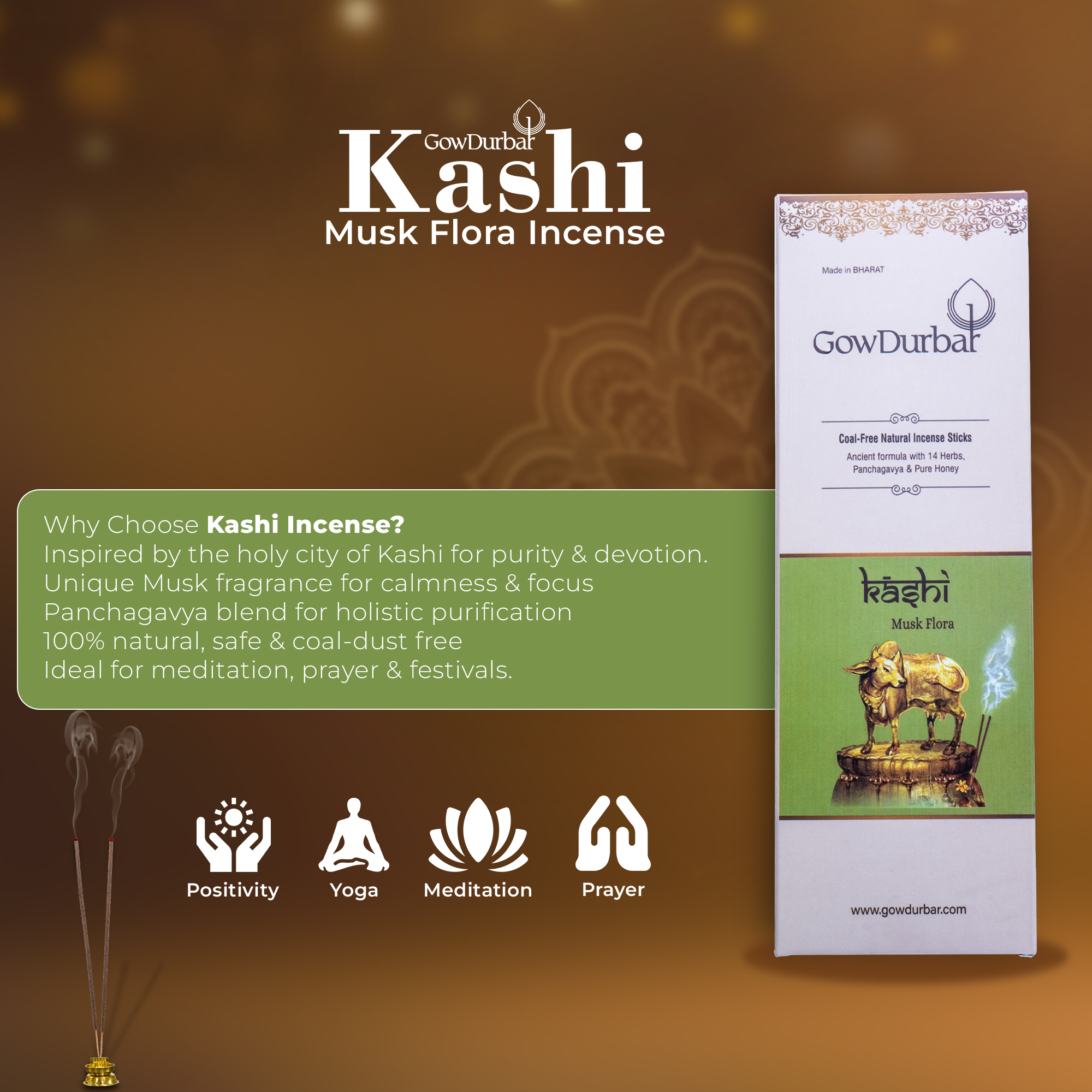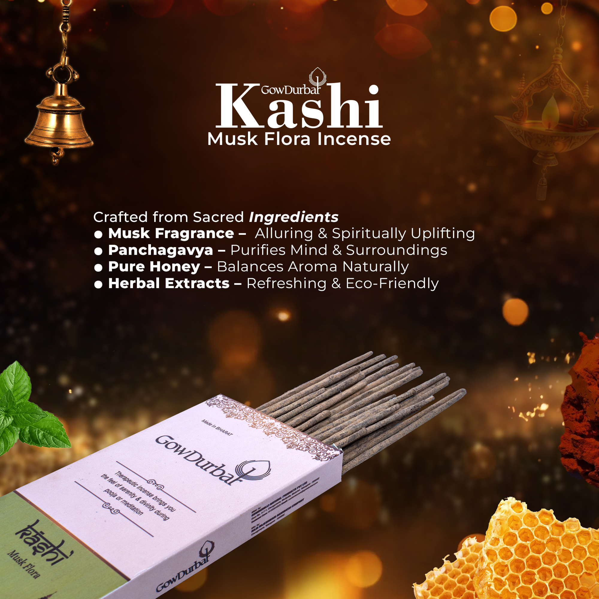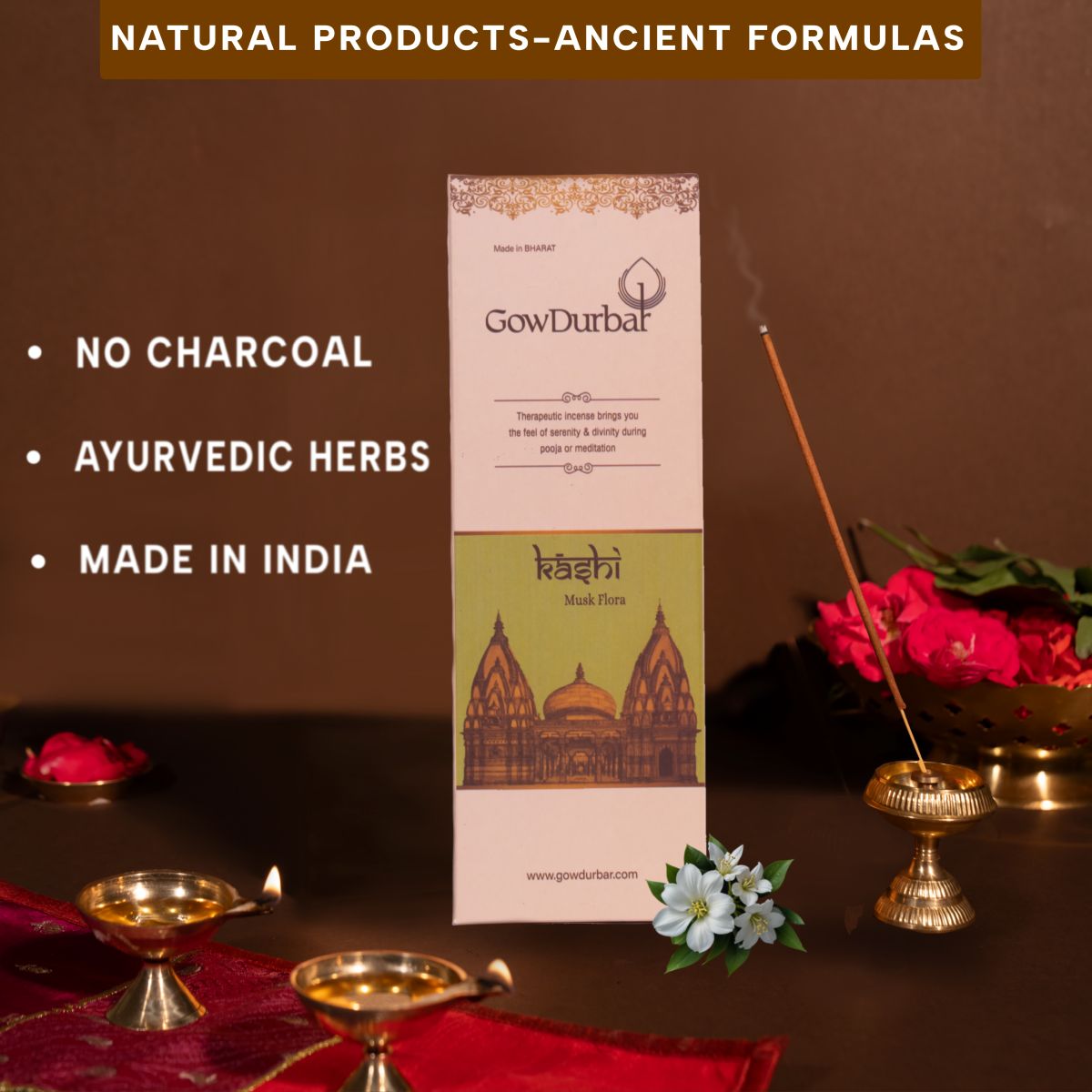 The Incense is named after Holy City, ” Kashi ” which is revered as one among seven Liberation cities in Indian culture. In Hindu tradition, seven places are considered as utmost sacred & believed to result in liberation (moksha) just by visiting once in a lifetime. Uttering those city names itself is highly regarded. Our Musk Flora Incense is made such that you would experience the vibes of consecrated place, Kashi at your doorstep.