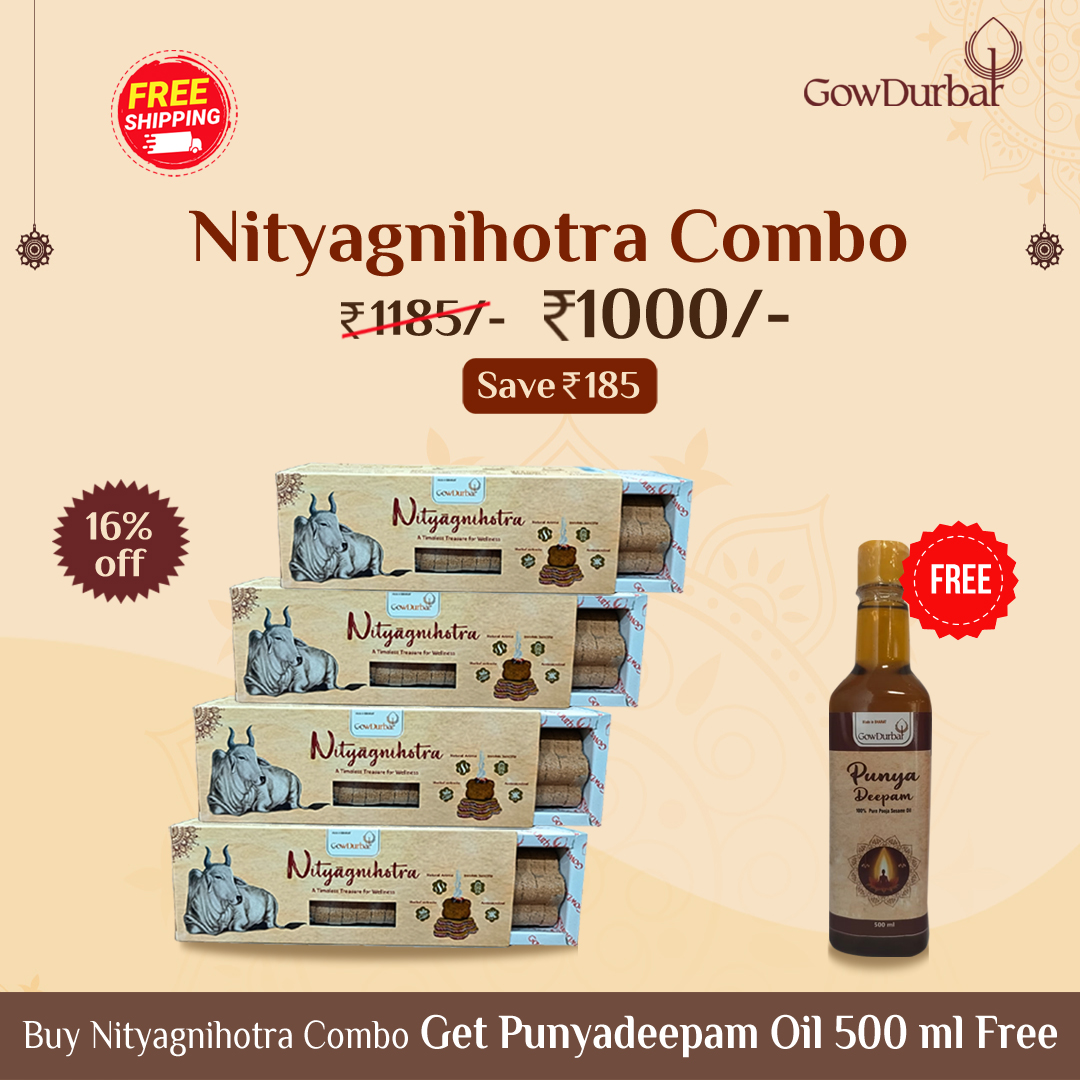 Crafted from 16 powerful natural herbs, indigenous cow-derived Panchagavya, and medicinal tree bark powders, Nityagnihotra Dhoop serves as a natural defense against pollution, harmful emissions, and airborne illnesses. Its herbal vapors purify the air, dispel negative energies, and elevate spiritual vibrations—fostering a sacred atmosphere that supports physical and mental well-being.