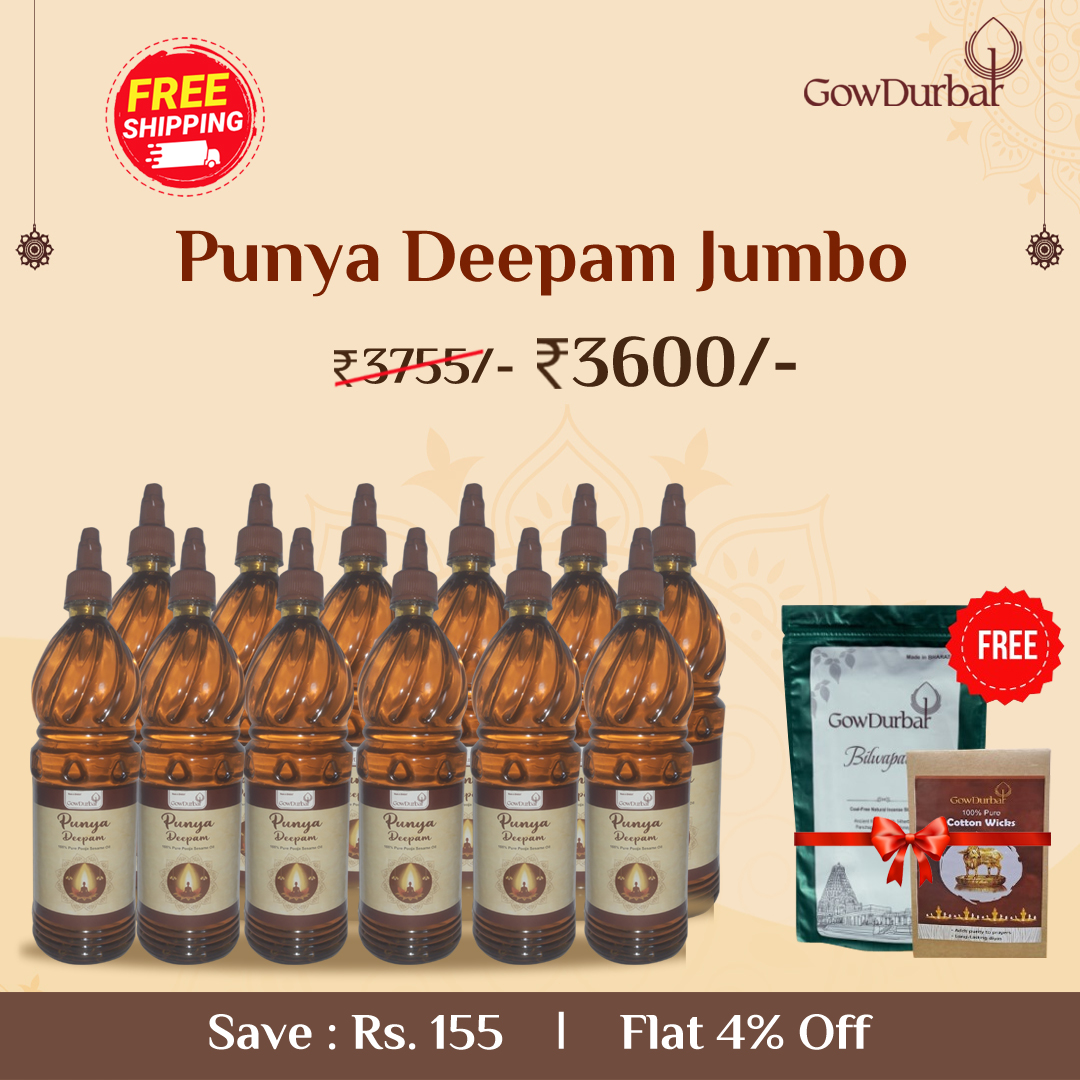 Punya Deepam Oil is an authentic sacred pooja oil made of sesame seeds, which rejuvenates the surroundings with positive energy and protects from fumes and pollution. Pure sesame oil for pooja leads to good fortune.
