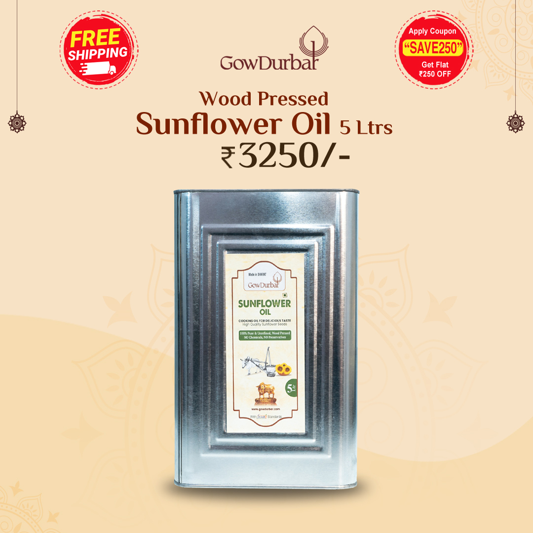 GowDurbar Wood Pressed Sunflower Oil, a culinary masterpiece and health solution, invites you to experience the rich and delicious taste of organically grown sunflower seeds. Crafted with precision, this cooking oil epitomizes purity, being 100% unrefined and traditionally filtered, devoid of any chemicals or preservatives. Elevate your cooking endeavors while encouraging a healthier lifestyle.