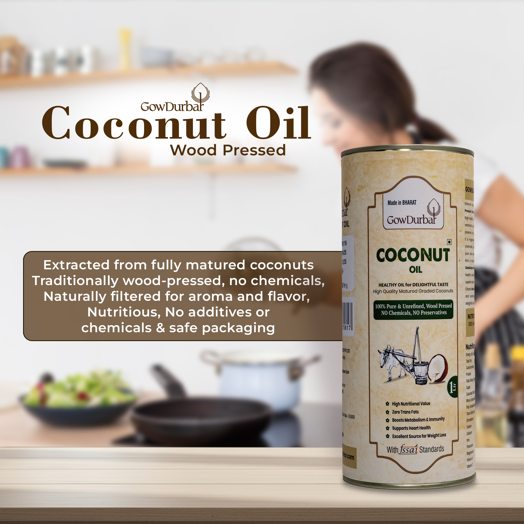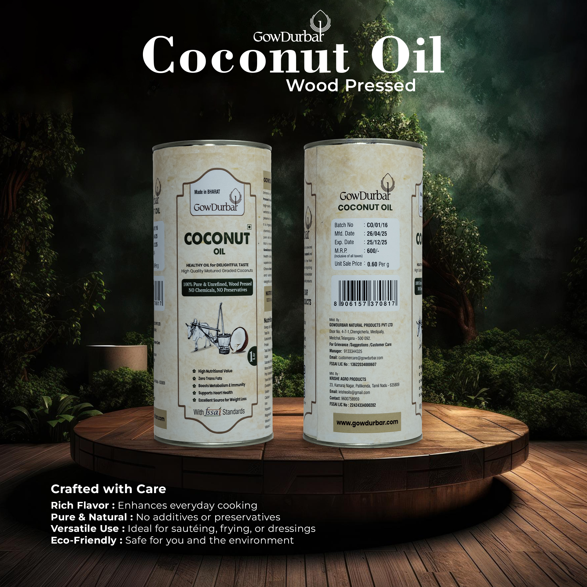 GowDurbar Wood Pressed Coconut Oil is a premium culinary choice, derived from high-quality matured coconuts to deliver an exceptional taste experience. What makes it truly special is its unwavering commitment to purity—100% unrefined, traditionally filtered, and completely free from chemicals or preservatives.